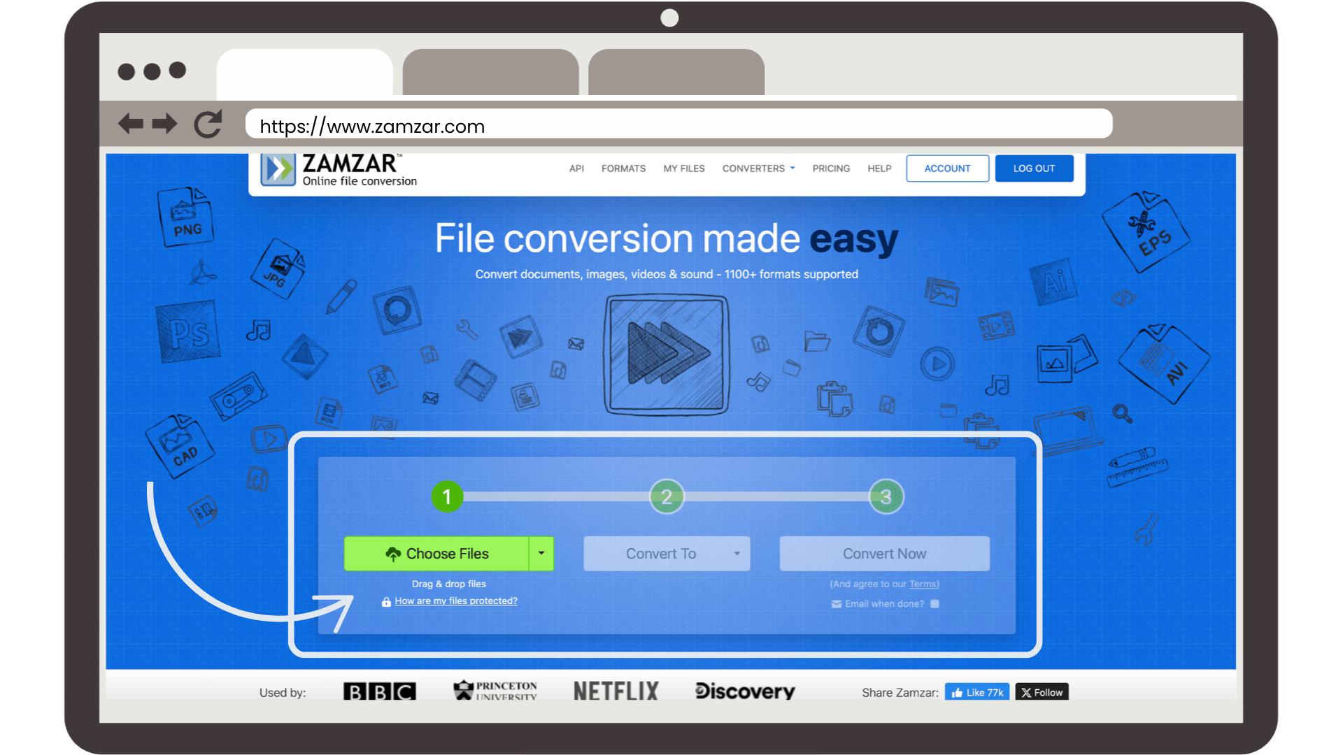 Next, you need to open your favourite browser and visit www.zamzar.com.